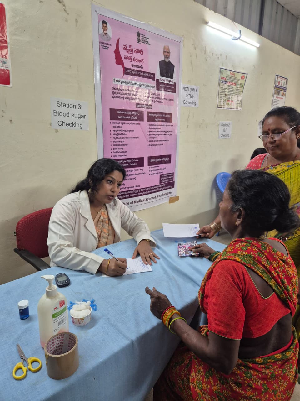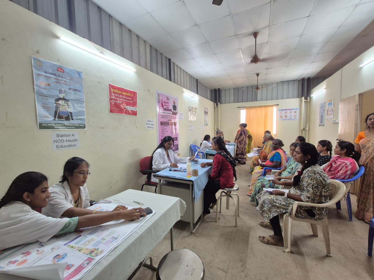 Screening camps for anaemia, hypertension, diabetes, breast and cervical cancer, and musculoskeletal problems.